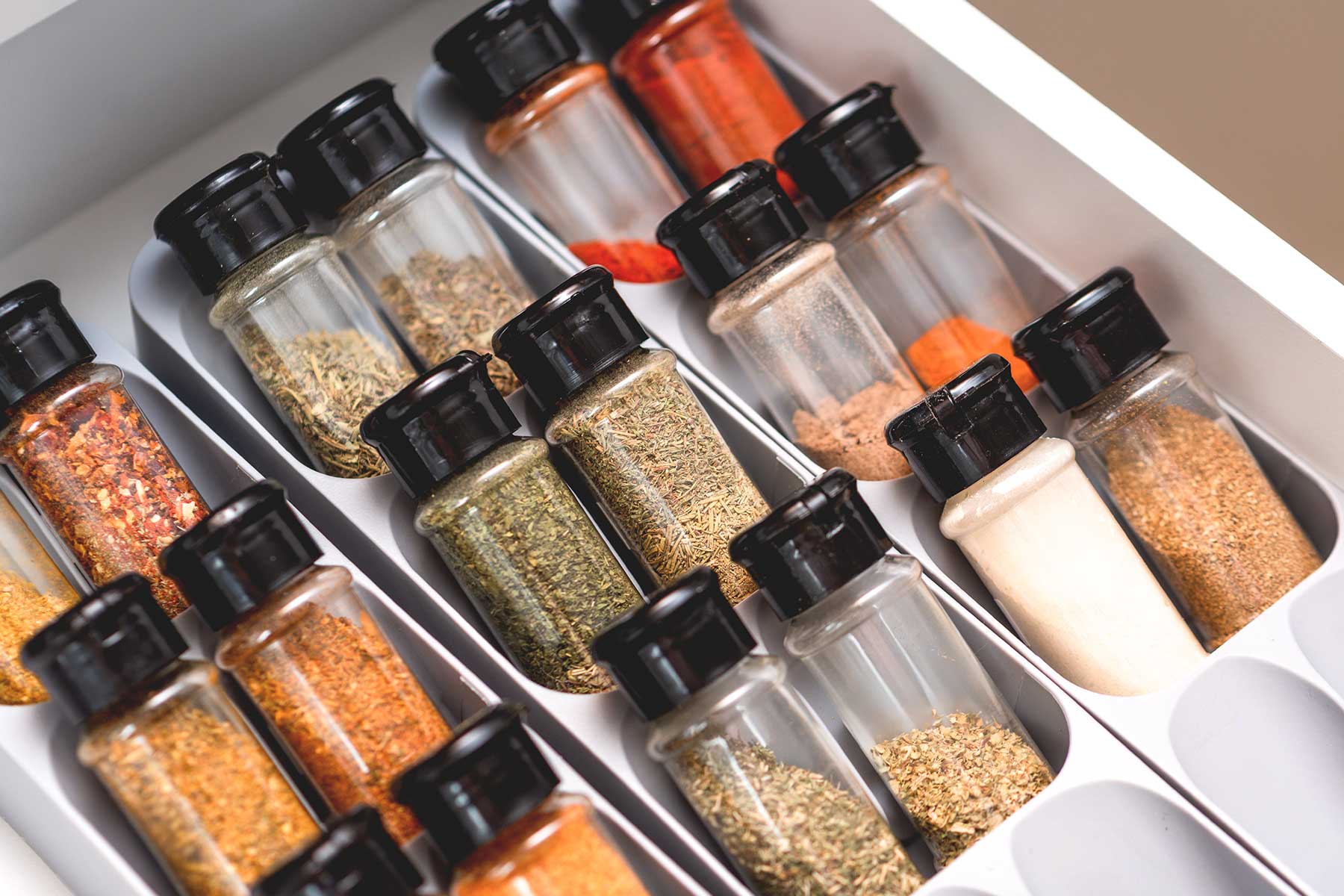 Gewürze werden beim Kochen gebraucht, nicht beim Abwasch. Platziert sie daher möglichst in Herdnähe, damit ihr beim Würzen nicht quer durch die Küche laufen müsst. - Schublade, Gewürzschrank oder Wandlösung bewusst wählen