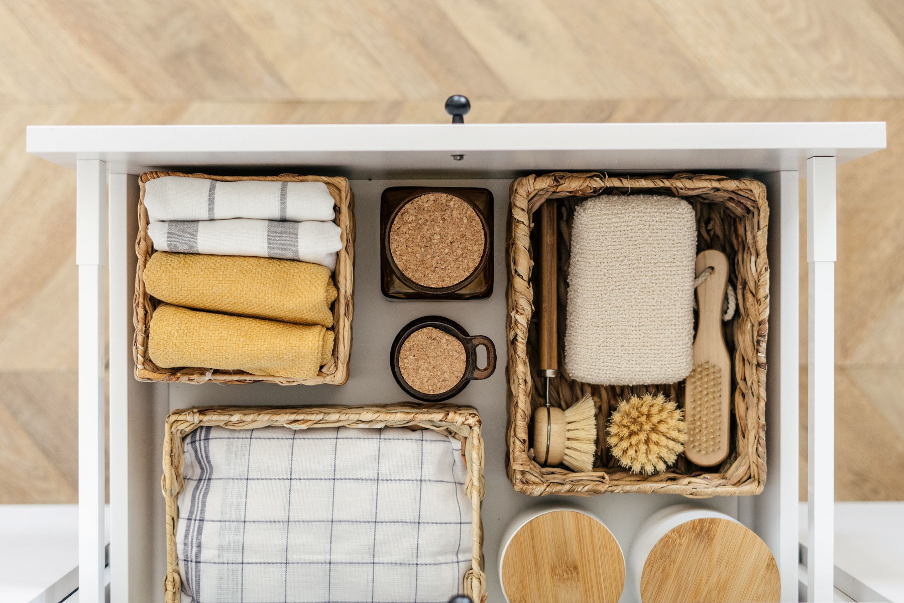 - Putzmittel, Müll und Kleinteile ordentlich unterbringen