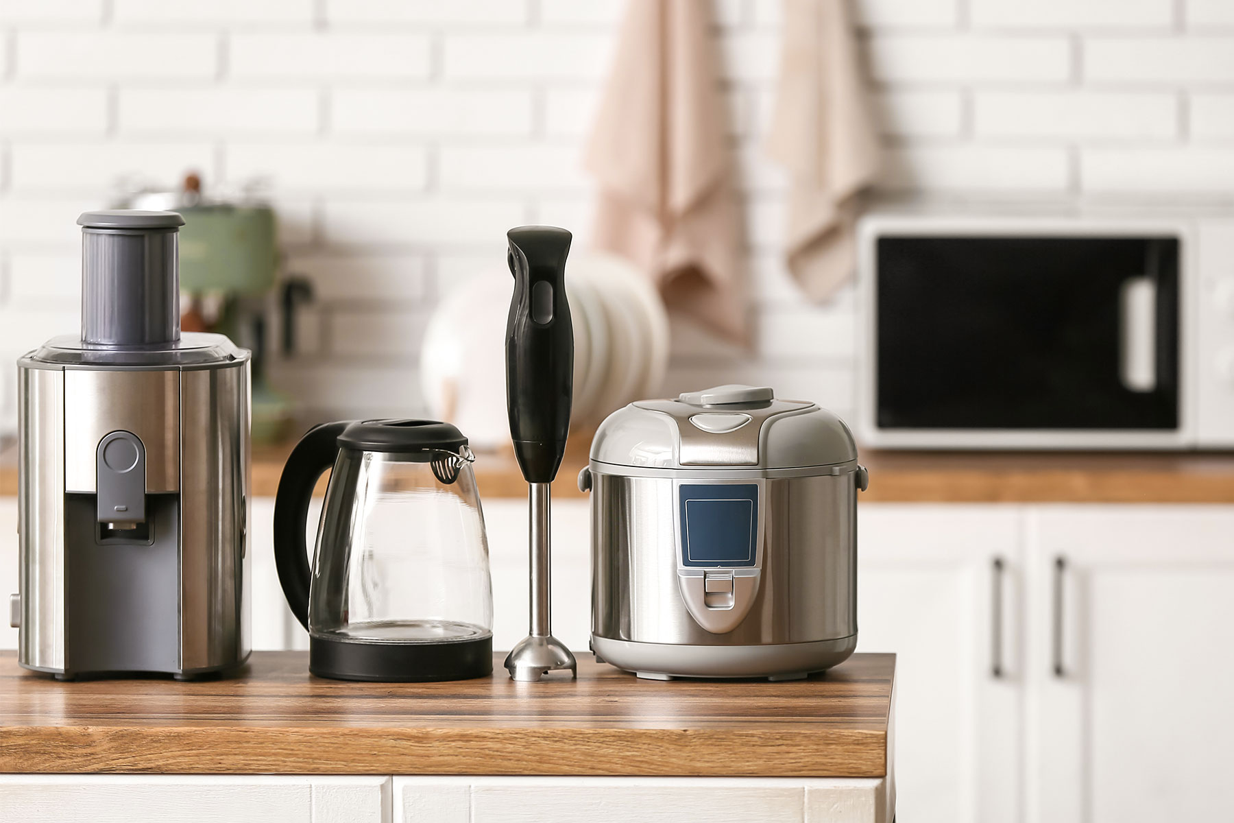Geräte, die ihr wirklich jeden Tag nutzt, dürfen einen festen Platz auf der Arbeitsfläche haben. Dazu zählen häufig Kaffeemaschine, Wasserkocher oder Toaster. - Selten genutzte Geräte verstauen